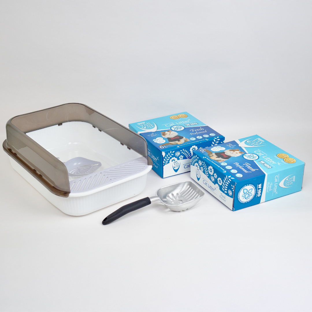 Litter Tray: A spacious, easy-to-clean haven for your kitten to conduct their business, with high sides to contain mess and limit scatter. This tray also features an exit grille to help remove litter from paws as your cat departs. Dimensions: 50.5cm length, 34cm width, 10cm depth (not including high sides) and 19 cm with the high sides attached